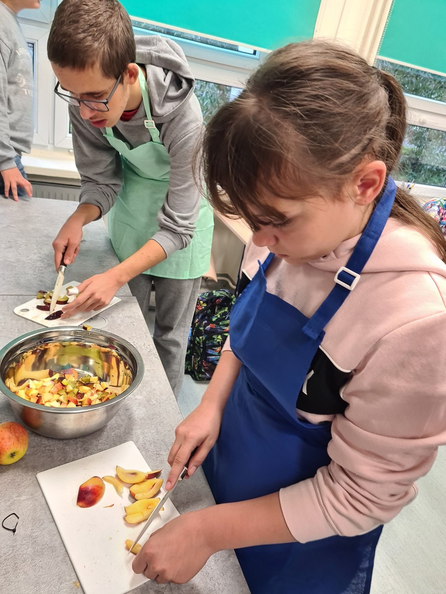 Nasi uczniowie stawiają pierwsze kroki w pracowni techniki. Uczymy się wszystkiego „od kuchni” w super wyposażonej pracowni dzięki programowi Laboratoria przyszłości. Dopiero się rozkręcamy!. 😉 Zajęcia dają nam wiele satysfakcji. Jest smacznie, zdrowo i owocowo. Mamy szansę na odnalezienie szkolnego Master Szefa. 😉 Smacznego!